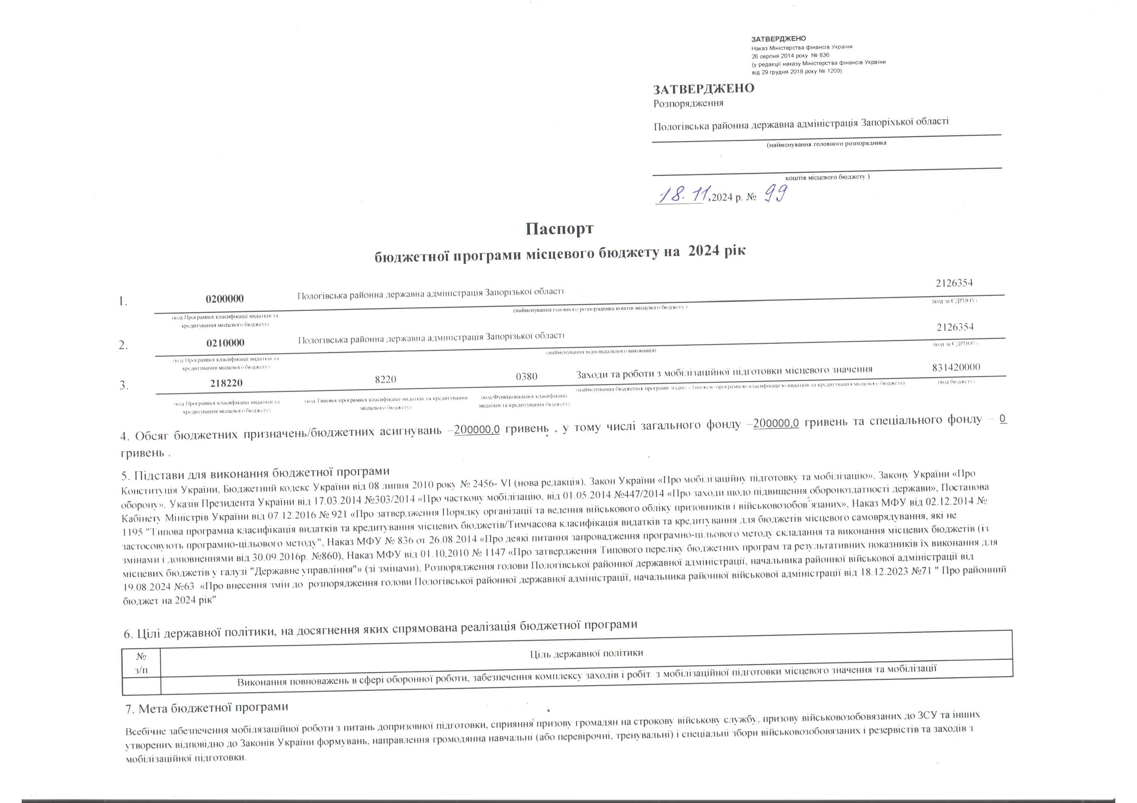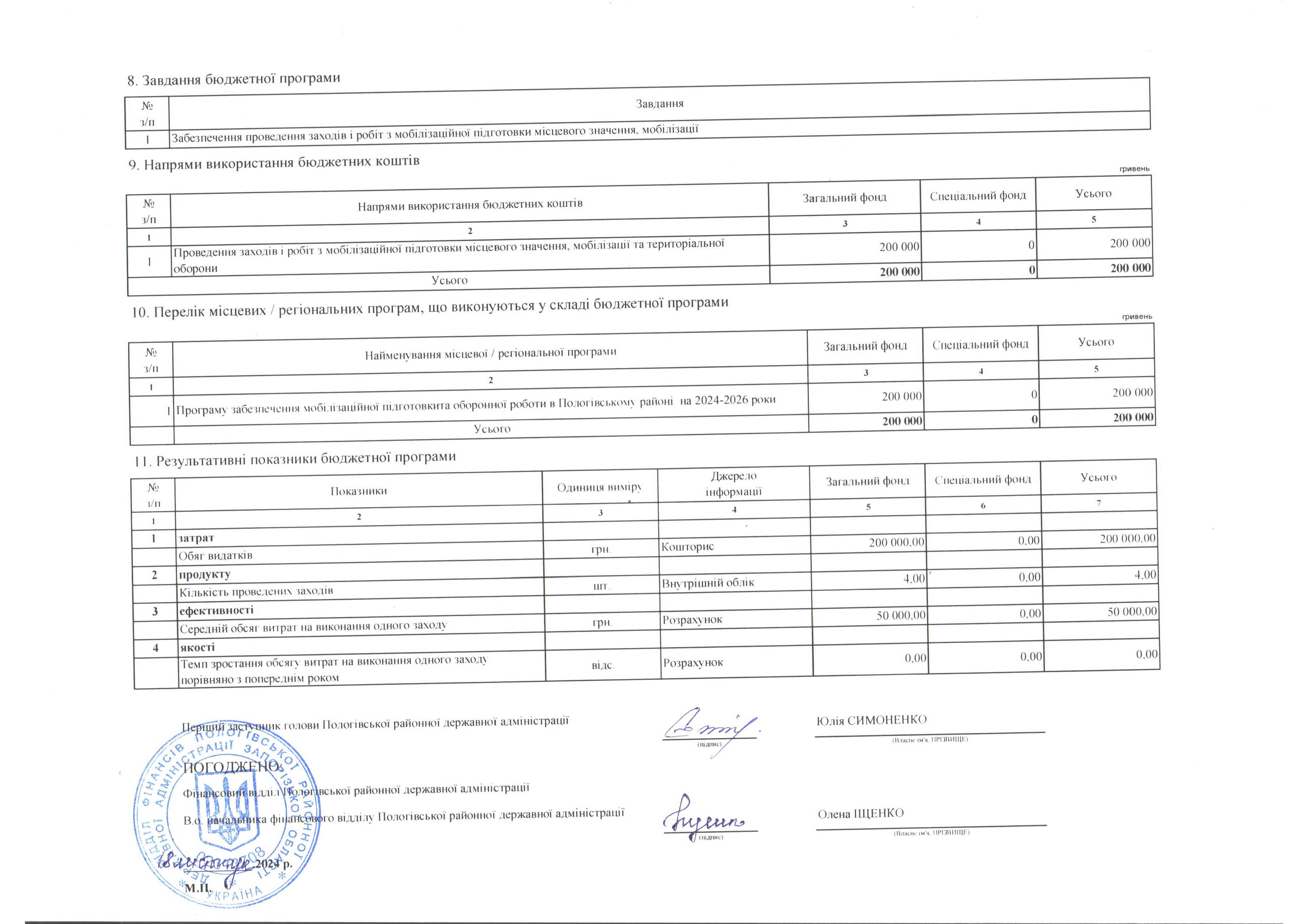 Паспорт бюджетної програми місцевого бюджету на 2024 рік