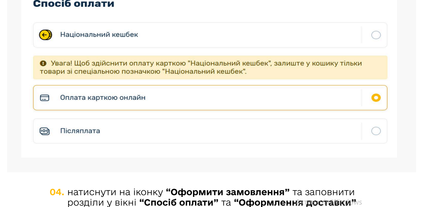 Звертаємо увагу, що карткою «Національний кешбек» можна оплатити лише ті лікарські засоби, які мають спеціальну позначку «Національний кешбек». Також оплатити товари можна карткою онлайн та при отриманні замовлення у відділенні Укрпошти.
